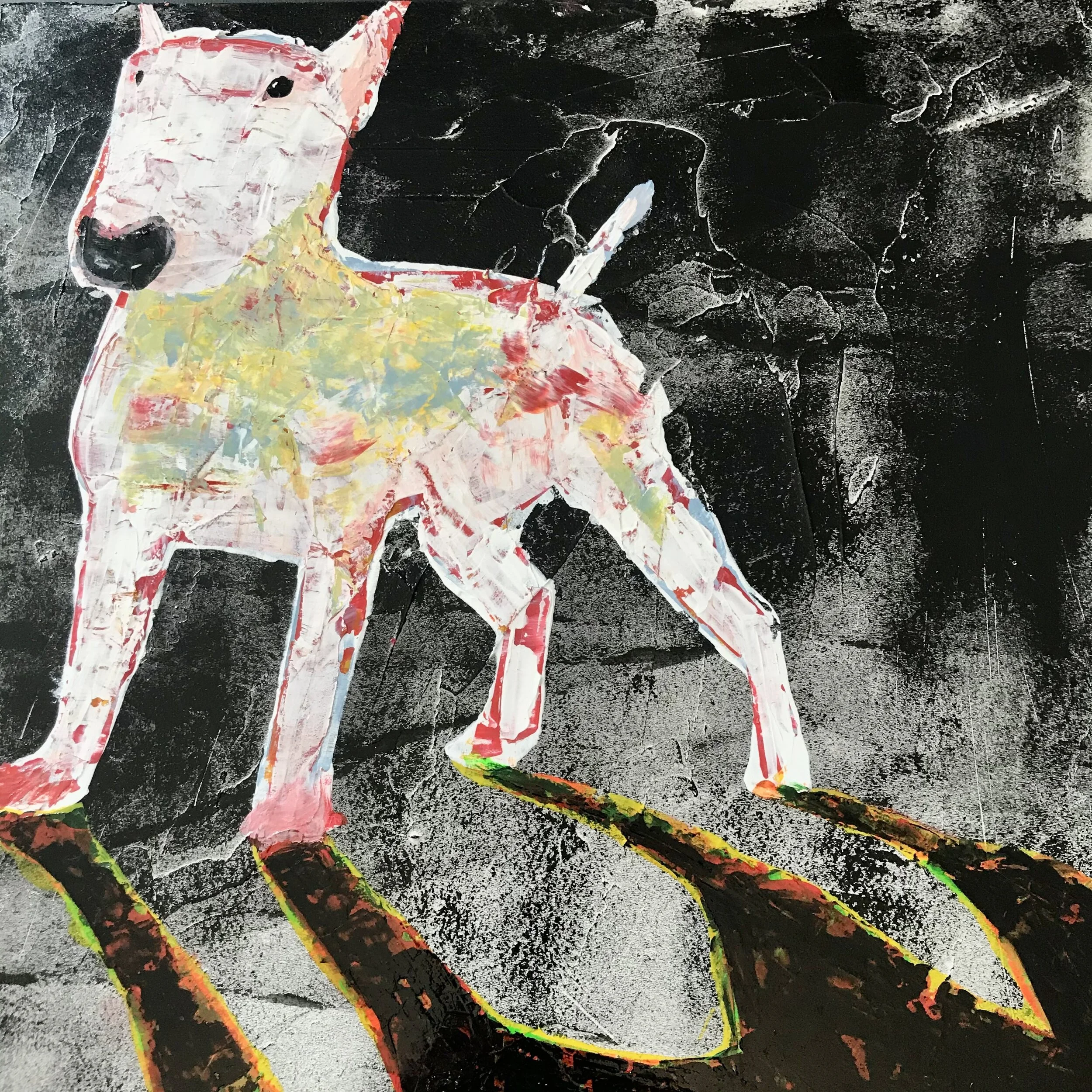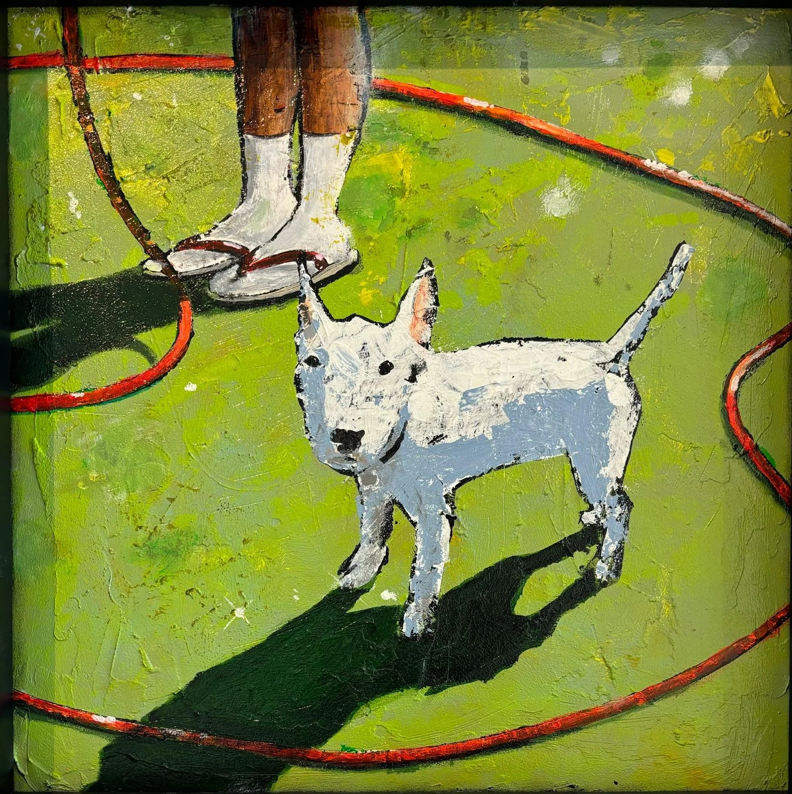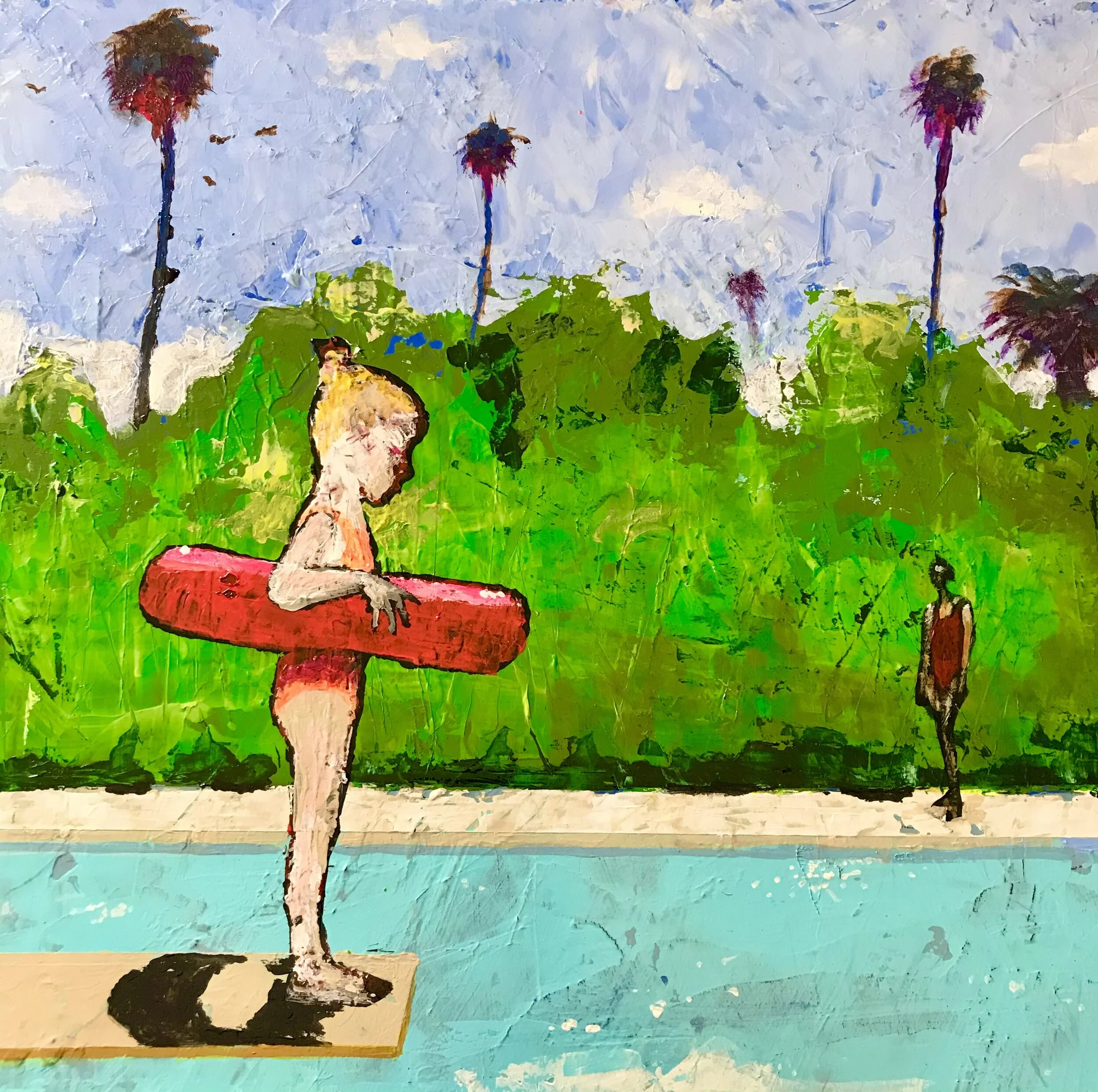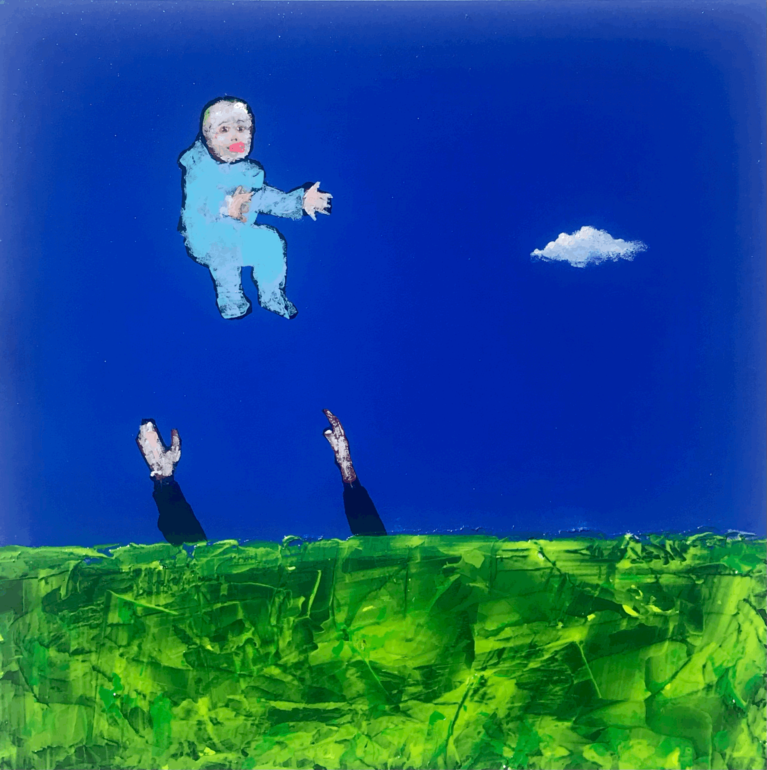These are little bite sized paintings that I do most Friday nights after a long week. Usually accompanied by a couple of cold beers to ease me into the weekend. (60x60 or 50 x 50cm framed. Acrylic on board). I started doing them in response to people (2 people) asking me if I did smaller versions of my bigger stuff. And I’ve found that I really like doing them. Because they’re smaller they’re quicker to do. More experimental. Which means the subject matter can be literally anything that takes my fancy. Quite liberating to be honest. If they don’t work, or I don’t like them, I chuck them.